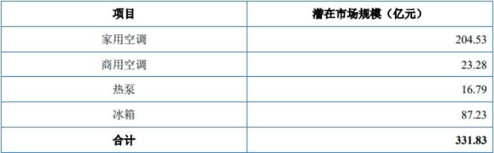 ②变频产品的渗透率不断提升:在“碳达峰、碳中和”节能减排政策背景下,变频产品渗透率有望进一步提升。2020年以来,我国开始实施《电动机能效限定值及能效等级》(GB18613-2020)能效标准新规,部分低能效、高耗能的定频空调逐步淘汰退出市场。2023年2月,国家发改委等9部门联合印发《关于统筹节能降碳和回收利用加快重点领域产品设备更新改造的指导意见》,提出力求2025年在空调、冰箱、洗衣机、热水器、吸烟机等主要家电中能效达到能效2级节能水平及以上的占比较2021年提高10个百分点。据统计,2023年我国家用空调、商用空调、冰箱、空气源热泵变频产品销量占比分别为95%、82%、65%、25%,政策驱动下变频产品加速渗透。测算2023年度我国暖通空调及制冷领域(空调、热泵、冰箱等)的变频驱动器潜在市场规模为331.83亿元,测算过程如下: