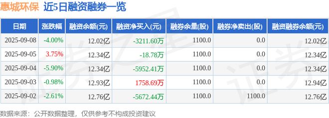 惠城环保融资融券信息显示,融资方面,当日融资买入3756.13万元,融资偿还6967.73万元,融资净偿还3211.6万元。融券方面,融券卖出0.0股,融券偿还0.0股,融券余量1100.0股,融券余额20.93万元。融资融券余额12.02亿元。